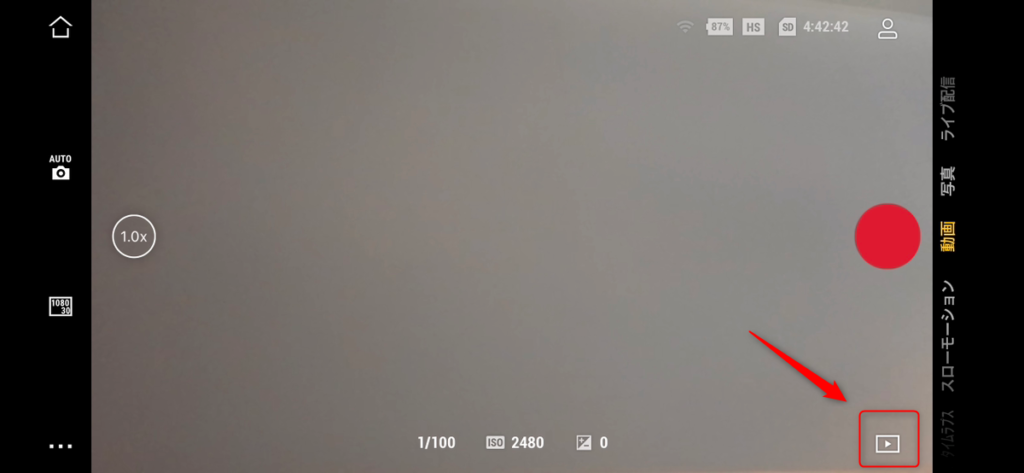 画面を上下左右にスワイプすることで、各種設定アイコンを出したり、撮影モードを写真から動画に切り替えたりできます。画面を下から上にスワイプすると、現在の撮影モードでの解像度やフレームレート、手ブレ補正の設定、アスペクト比、撮影カウントダウンなどを設定する画面に入ります。