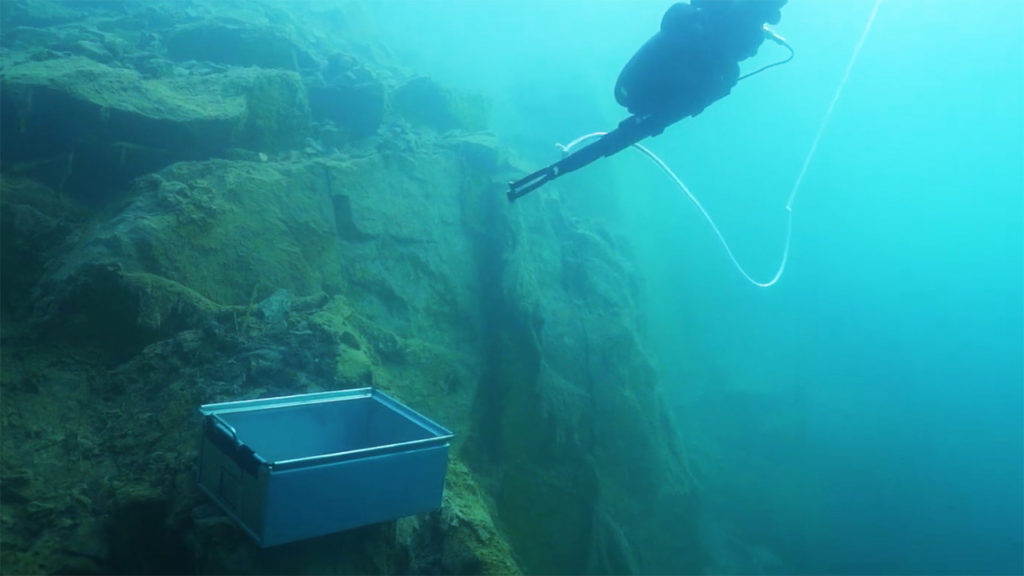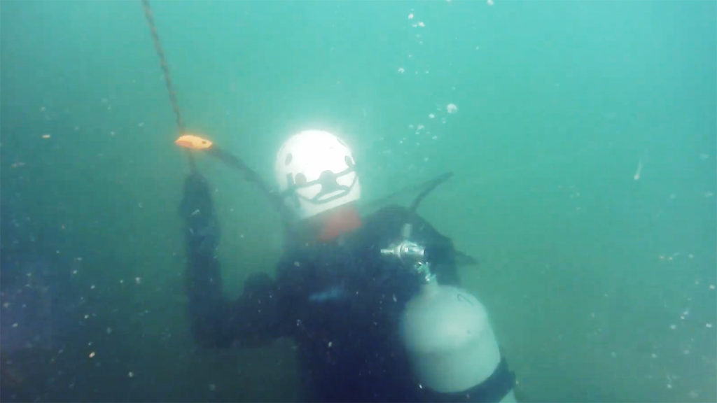 アームを使用して地上からのケーブルを対象物に固定する事ができ、夜間や暗渠の現場では水中ライトを使って安全かつ迅速に捜索・救出することも可能です。災害現場では救助隊員の安全性を確保できないような場合でも、水中ドローンなら素早く対応することができます。