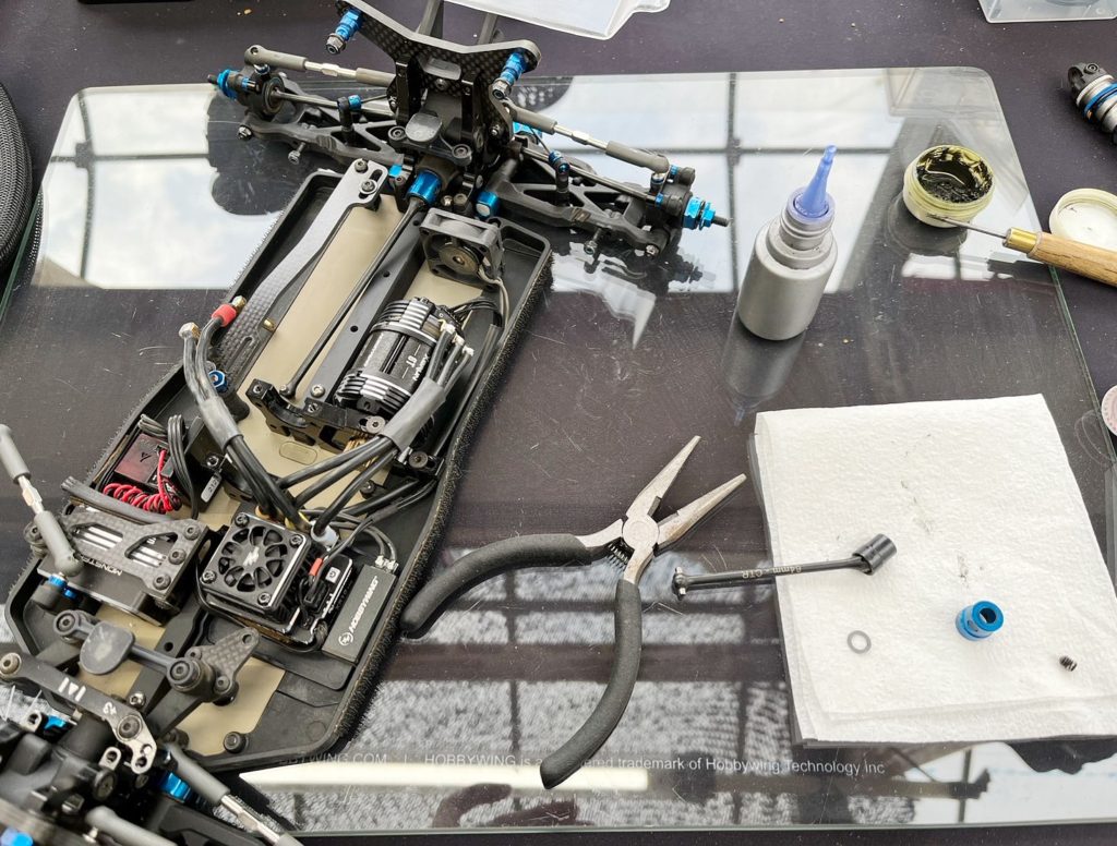 メンテナンスや調整は、前日の夜までに終えて余裕を持った状態にしておきましょう。当日朝は、バッテリーの充電とタイヤチョイスのみ行い、練習走行するのが一般的なパターンです。