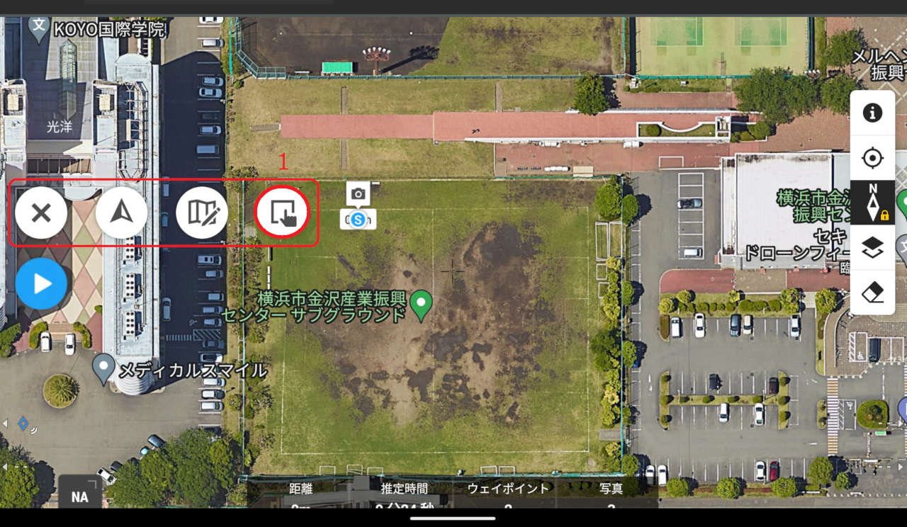 1. 「飛行ルート」の編集ボタンから、一番右のボタン(指でタッチしている図)を押す