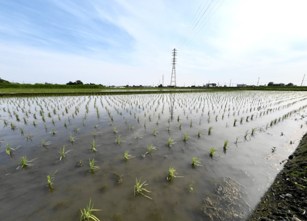 前置きが少し長くなりましたが、当日のレポートです。今回はコチラの水田に除草剤を散布するというお仕事を見学します。私も首の後ろまで日焼け止めを塗って、取材の準備はバッチリです。