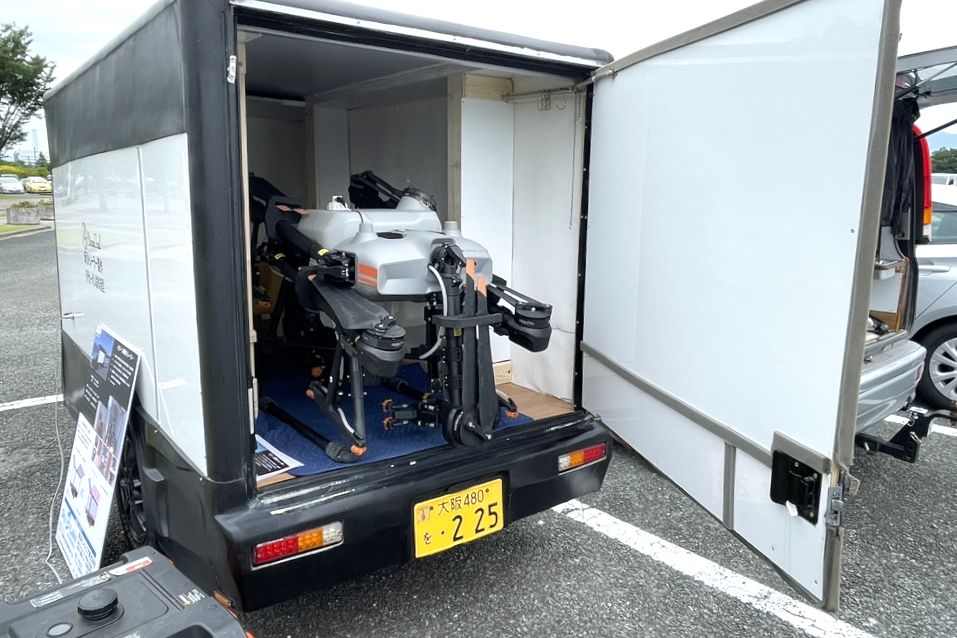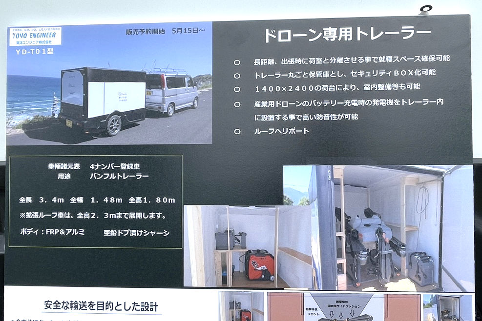 そのほか、ドローンによる農薬散布を大きな規模で運用することを見据えて、ドローン専用トレーラーも展示しておりました。