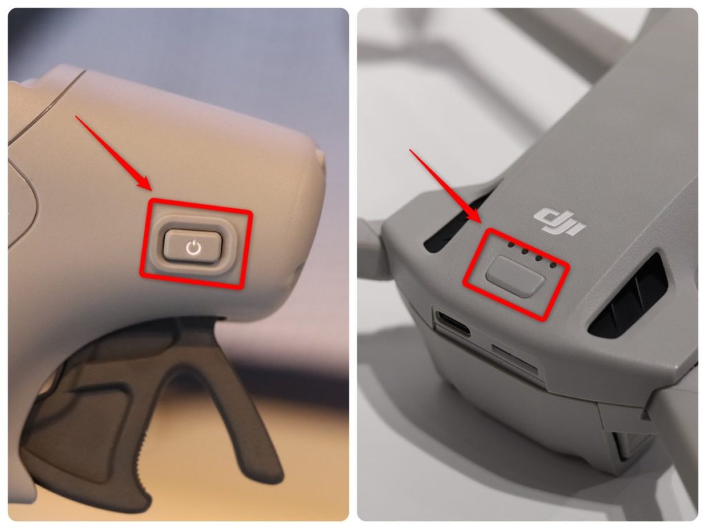 次に、ドローンとモーションコントローラーをリンクします。モーションコントローラーの電源ボタンを長押し → 機体の電源ボタンを長押しします。