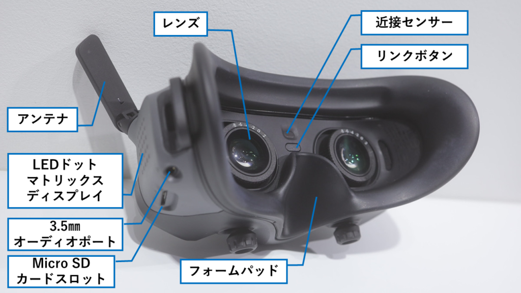 まずはゴーグルの表面です。特に見慣れない機能にしぼって解説します。