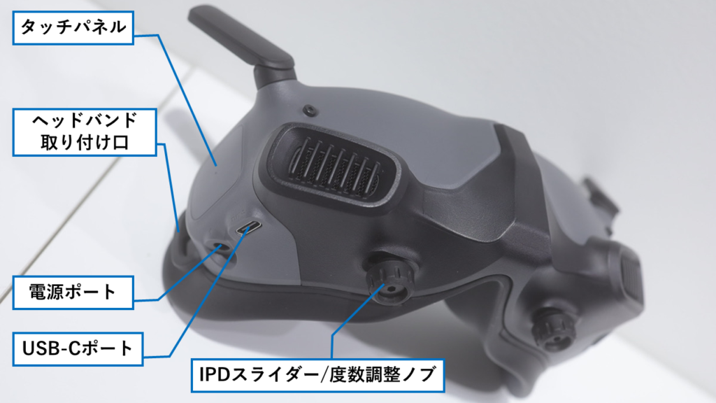 ゴーグル装着後の画面操作はこのタッチパネルで行います。上下左右スワイプ、タッチなど。