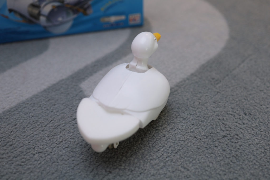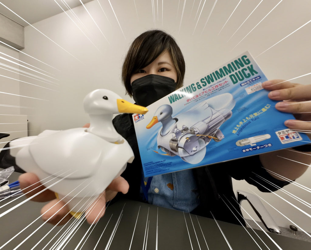 このとても可愛いアヒルは第61回静岡ホビーショーで発表された電動工作で、タミヤさんのTwitter(現X)では1万件以上の「いいね!」を獲得した水辺のトップアイドルです。#タミヤのアヒル でバズってます。販売価格は税込2,200円で、2023年8月上旬に発売されました。