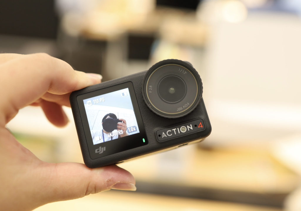まずは撮影用のカメラとして、新発売のDJIアクションカメラ Osmo Action 4 を用意しました。microSDカードも入れて、撮影の準備はバッチリです。