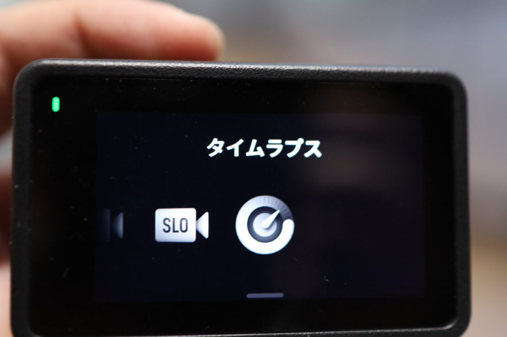 アクションカムで動画を撮る方は多いと思いますが、タイムラプスはあまり使いこなせてない・・・というお話を聞くこともありますので手順を紹介しておきます。まず、撮影画面左下のビデオカメラのようなアイコンをタップします。