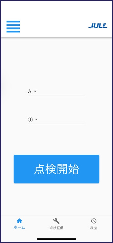 また、飛行日誌の最後の項目、点検整備記録もこのアプリ内で記録ができます。まずトップ画面真ん中下の[点検整備]をタップします。次に機体、点検実施者をプルダウンから選択します。実施日時・実施場所、飛行時間は自動で入力されます。「点検内容」「実施理由」「備考」を、それぞれ右側のペンのアイコンから入力してください。最後に画面下の[点検完了]をタップすると点検整備記録が完成します。
