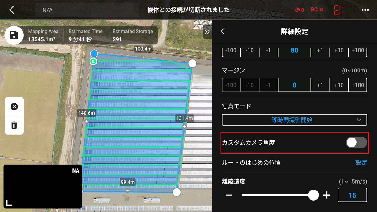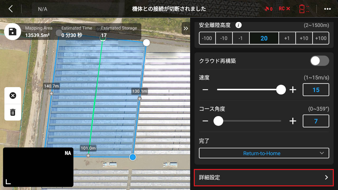 1. 準備:自動航行のエリアルート(マッピング飛行)で範囲を指定