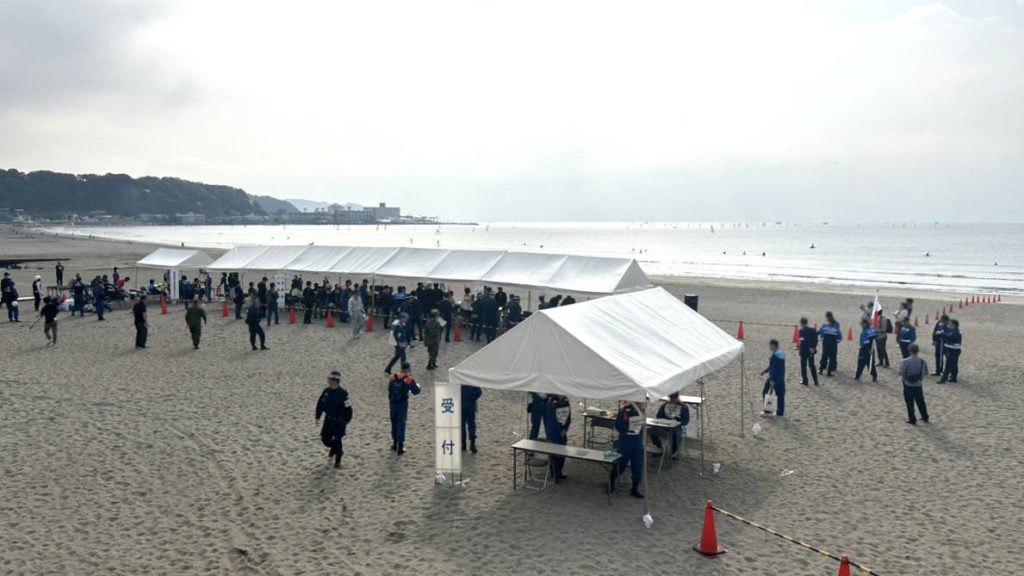 先日、神奈川県鎌倉市の由比ヶ浜海岸で実施された、神奈川県・鎌倉市合同の令和5年度津波対策訓練に参加してまいりました。
