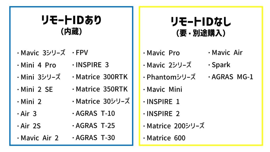 なお、これから新規で上記の登録を行うには「リモートID」と呼ばれる発信機のようなものをドローンに載せる必要があります。現行機のDJI製ドローンは、ほとんどすべてにこのリモートIDを製造時に内蔵していますから基本的に追加で購入する必要はありません。しかしPhantomシリーズやMavic 2シリーズなどの機体にはリモートIDが積載されていないので、別途購入する必要があります。