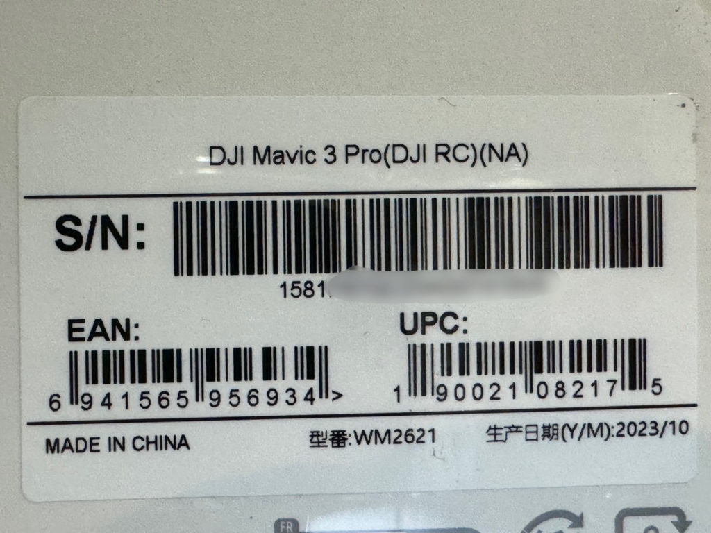 送信機から接続中のドローンのシリアルナンバーを確認する場合は〈カメラビュー画面〉→右上〈・・・〉→〈詳細〉と進み、〈機体SN〉をご確認ください。SNとは「シリアルナンバー」の略称です。Mavic 3 Proの場合、1581で始まることが多いようです。