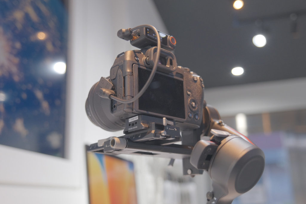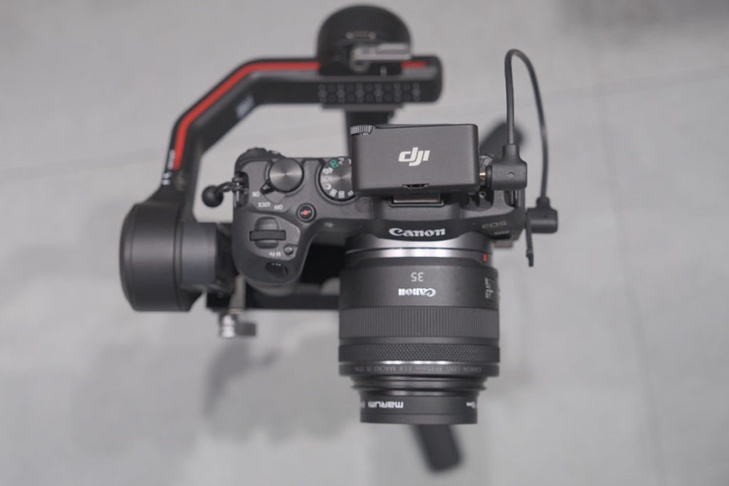 レシーバーは写真のようにカメラのホットシューに設置できるようになっています。せっかくなので、DJIのスタビライザー RS 3 に載せてみました。スタビライザーと Mic 2 を併用する場合は、カメラにレシーバーを取り付けてからバランス調整を行ってください。レシーバーを取り付けるだけでも重心位置が変わるため、その順番で進めたほうがスタビライザーの性能をさらに伸ばすことができますよ。