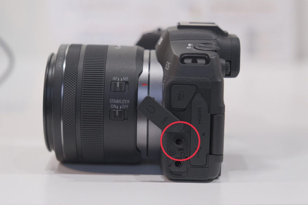 ①Canon EOS R8(外部マイク入力端子付きのデジタルカメラ)