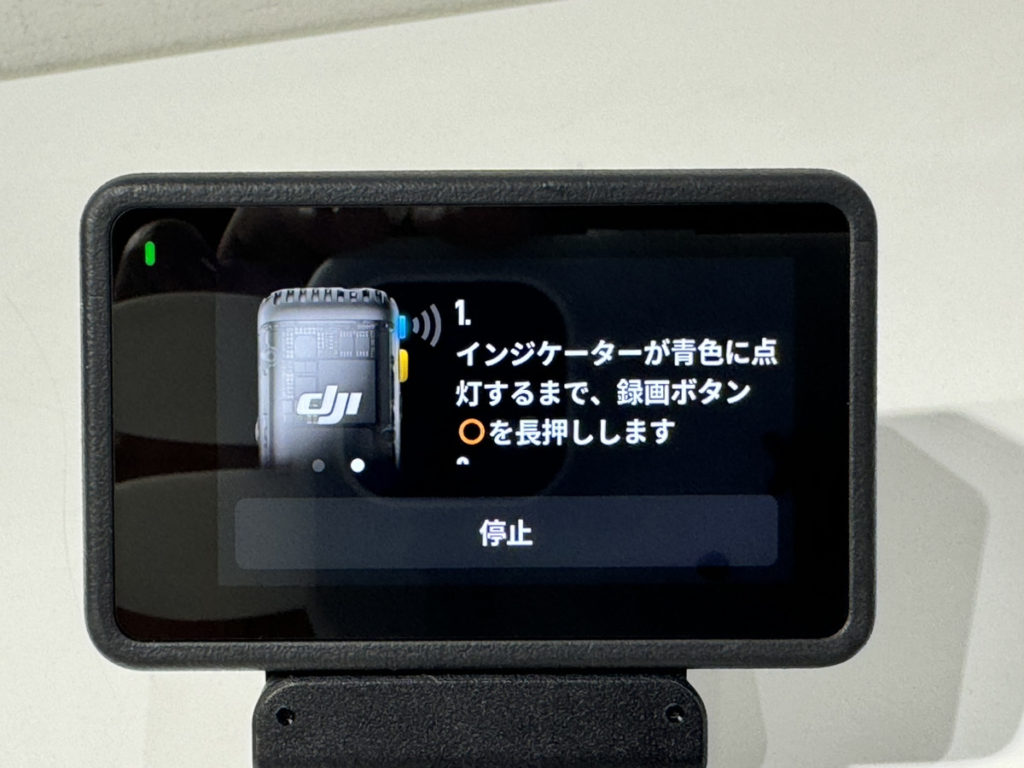 次はレシーバーを介さない、無線接続です。この場合では、接続できるトランスミッターは1個のみですのでご注意くださいませ。ちなみに Osmo Pocket 3 では無線接続でも2つのトランスミッターをリンクさせることが可能です。便利ですね。
