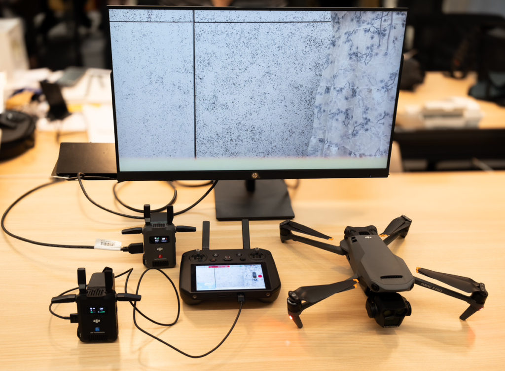 実際に電源を入れて、動作確認を行いました。DJI RS 4シリーズおよび DJI RS 3 Pro との組み合わせで動作することはもちろんですが、せっかくなので DJI Mavic 3 Pro と DJI RC Pro に登場してもらいましょう。特にドローンならば強烈な電波を発していますから、性能をテストするには適度な障害となり、SDR Transmission の実力が試せると考えての機材選択です。