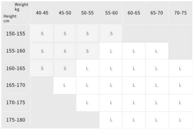 体格別にオススメのサイズ表がこちらです。長さ調整の効くストラップなのでそこまで厳密にサイズ表記載の通りに買う必要はないと考えますが、選ぶときの参考にしてください。