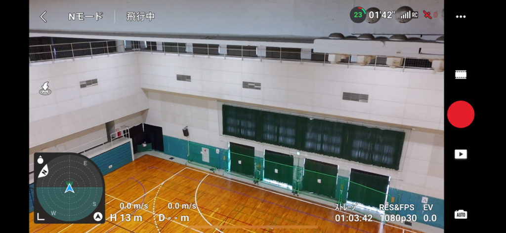 Neo は動画はもちろん、写真も撮影できるのでこちらもご覧ください。まずは体育館の天井近くまで上昇し、室内全体を撮影しました。