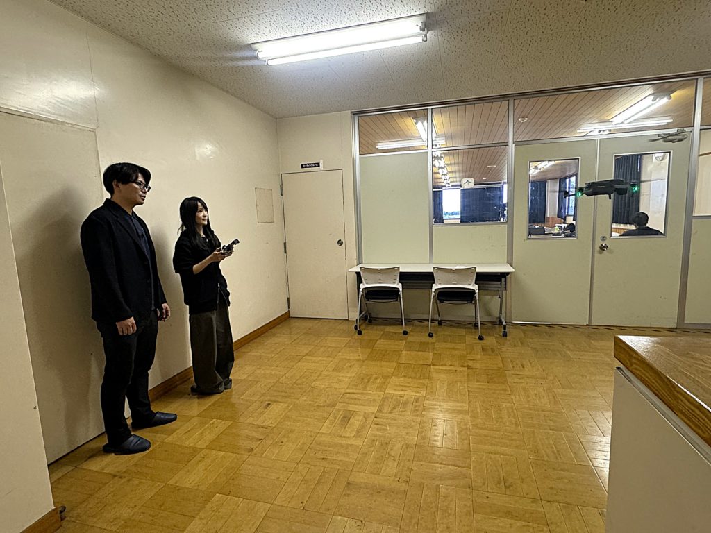 さらに校舎内の狭い廊下でRTH機能も試してもらいました。人が操縦するのも大変な場所で、進化したRTH機能は無事に戻ってこれるのでしょうか…?