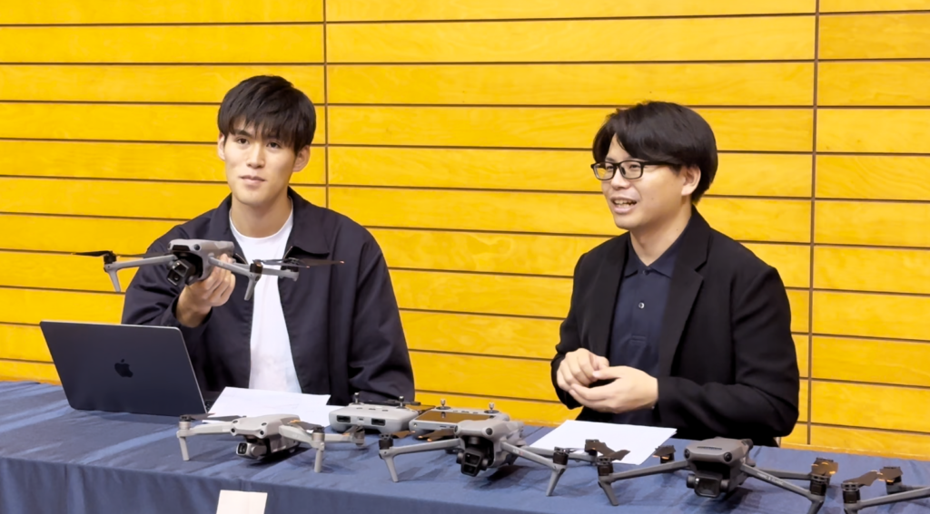 前回の DJI Neo リリースイベントに続いて、空撮や映像制作・メディア事業を行うTech Drone代表の藤本ひろきさんと、東京の都心部を中心にドローンスクールを運営しているハミングバードから森田 沙織さんにお越しいただき、Air 3S の機能や特徴、進化のポイントをYouTubeでレビューしてもらいました。