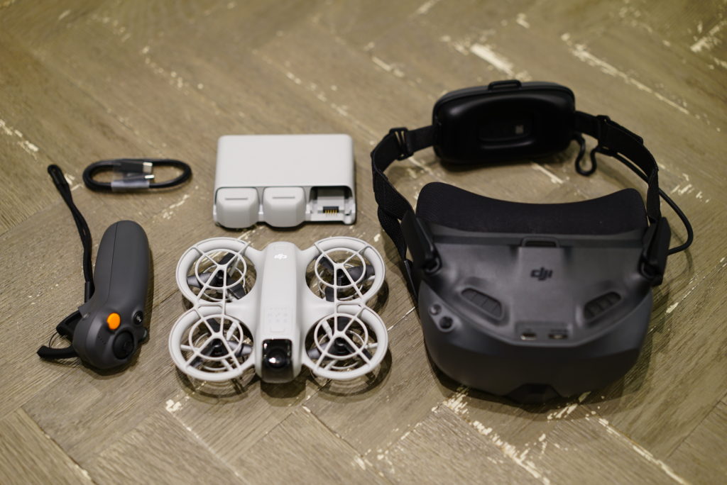 ここからは今回登場した DJI Neo Motion Fly Moreコンボ について触れていきたいと思います。Motion Fly Moreコンボは DJI Neo を使ってFPVで飛ばしたい方向けとなっていて、Goggles N3 やモーションコントローラーがセットになっています。