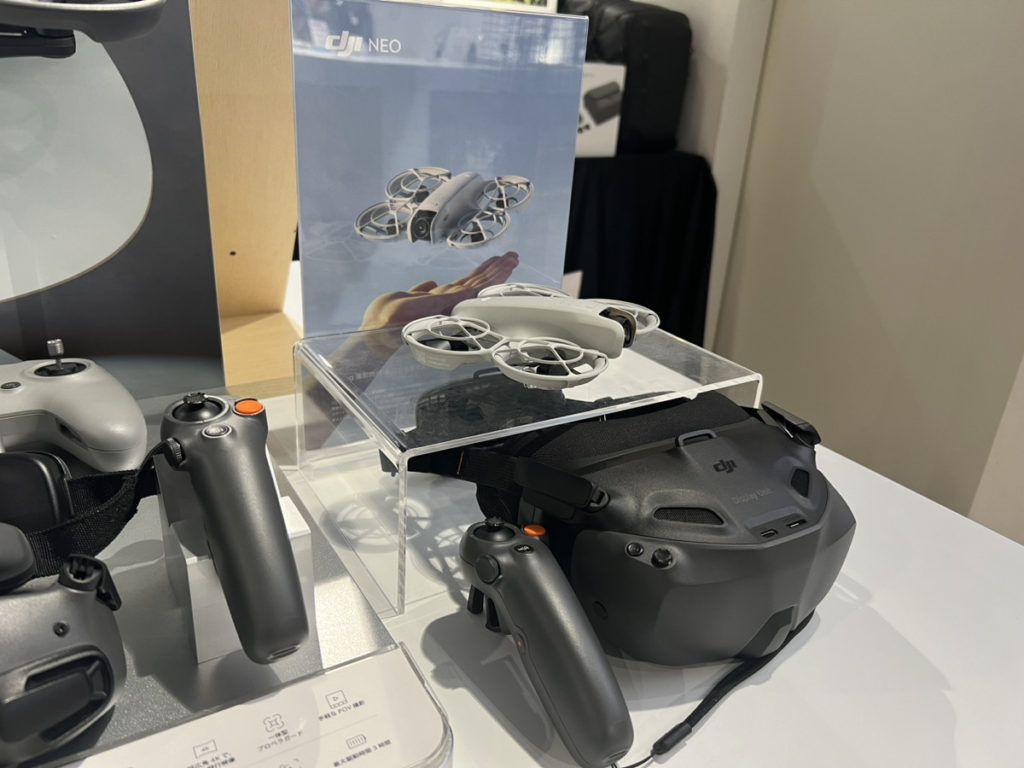 もちろん、セキドが運営する DJI認定 ストア東京虎ノ門 でも Neoの店頭展示・販売もしております。ケージ内で実際にゴーグルをつけて体験も可能ですし、在庫もご用意していますので、ぜひお気軽にご来店ください。10~13時は完全予約制です。じっくりお試ししたい方は、ぜひご予約のうえお越しください。