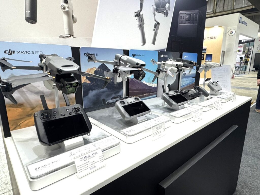 ドローンのコーナーでは、Mavic 3 Pro や人気の DJI Air 3S のほか、圧倒的な飛行性能を持つFPVドローン Avata 2 など大小様々なドローンを展示しました。
