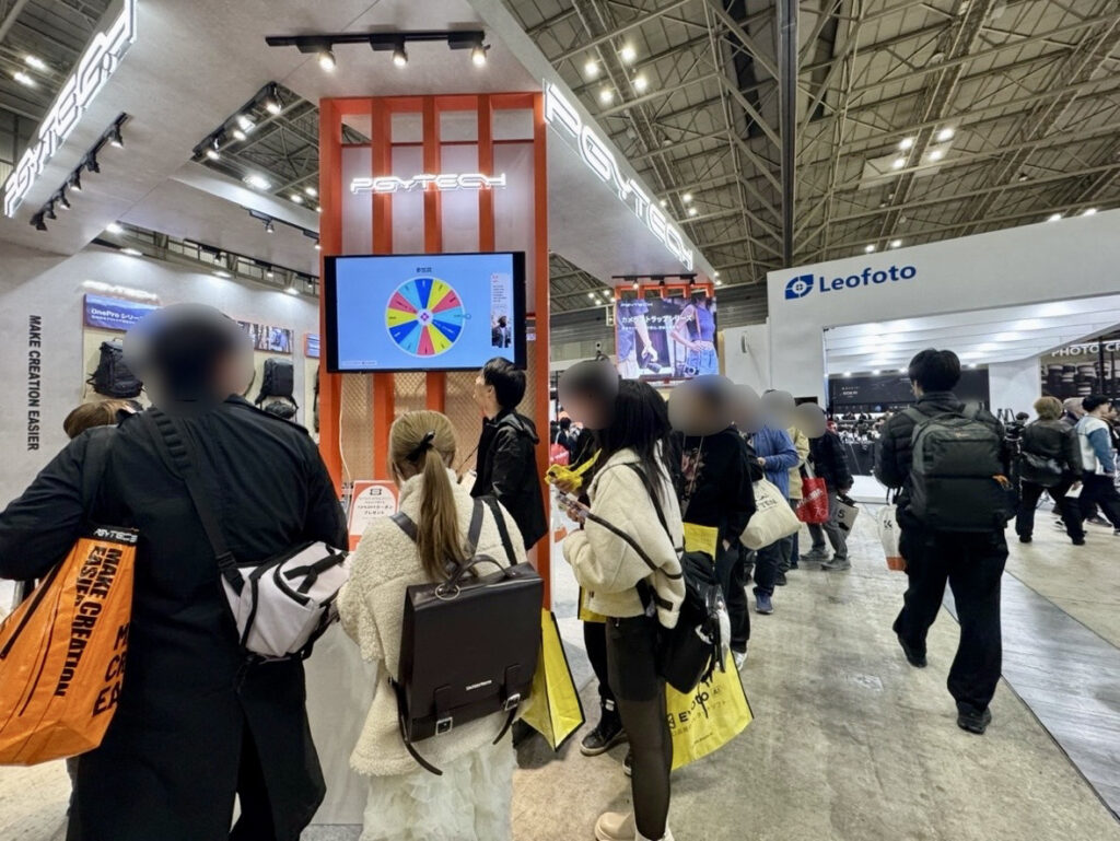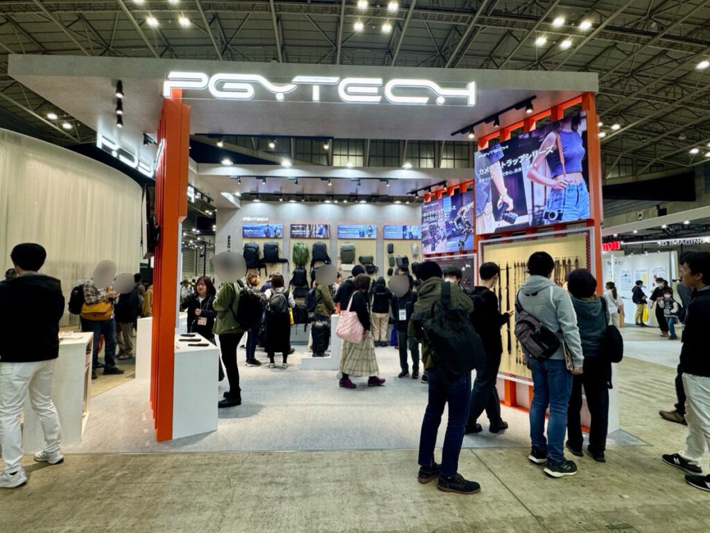 PGYTECHのブースでは、キャリーとバッグパックの2Wayで使えるRoller Camera Backpack や大容量で登山などのアウトドアに最適なカメラバッグ OneProシリーズ などの人気のカメラバッグをはじめ、ミニ三脚やカメラストラップなどのカメラアクセサリーを一挙に展示しました。