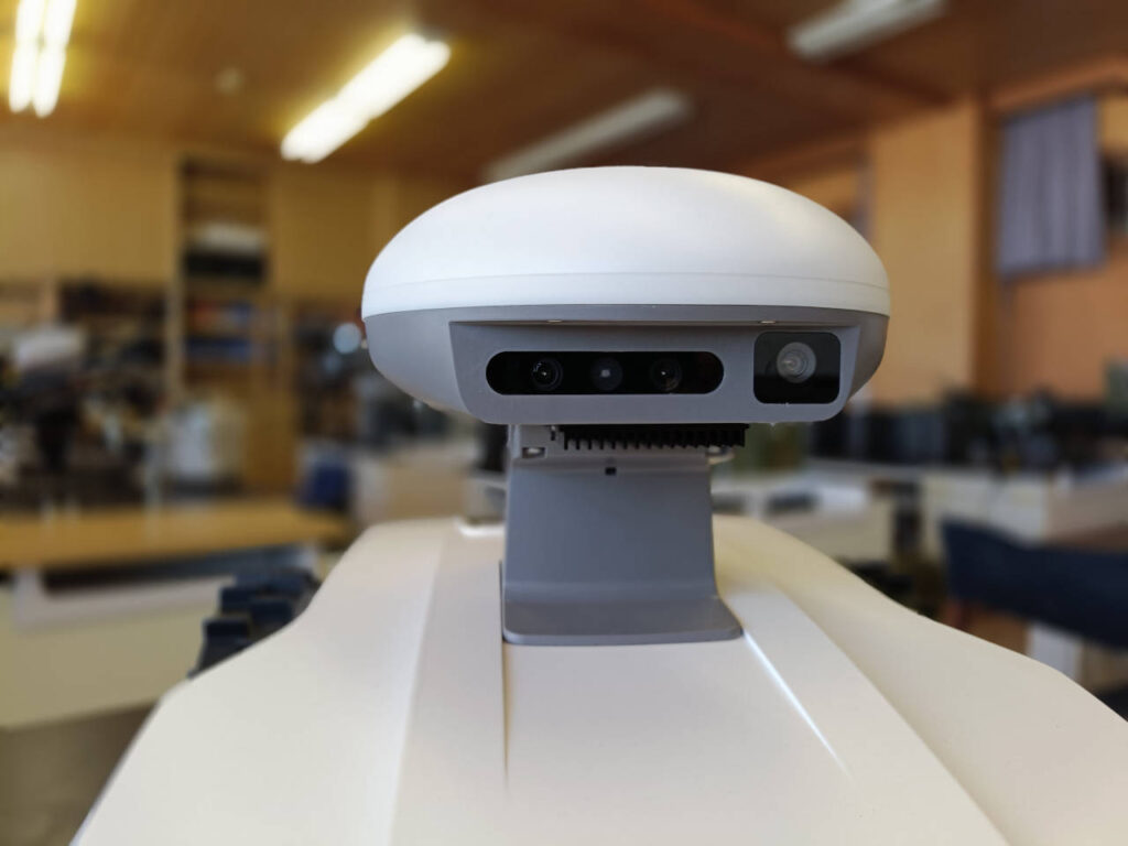 つるんとしたヘッド部分にはデュアルカメラとRGBカメラを搭載。これらで得た視覚情報を元にお庭を駆け巡ります。デュアルカメラで立体的に障害物を観測して、自動で避けてくれます。