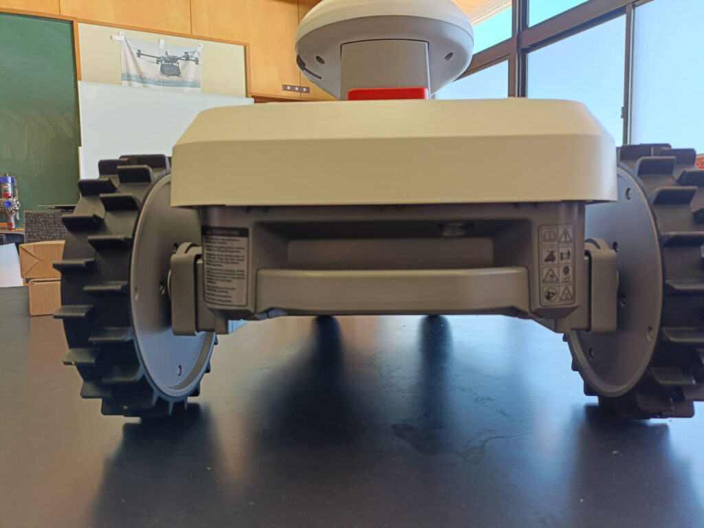 芝刈り機くん止まってくれ~~~!!!!という際にはダッシュしてこのストップボタンを押しましょう。強制停止します。ちなみに、雨センサーも搭載。本体はIPX5防水ですが、降雨時は仕事を切り上げて充電ステーションに帰ってきてくれます。