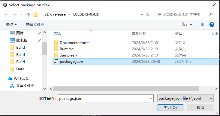 3)フォルダーを開くダイアログで、LCC SDK プラグイン パッケージへのパスを指定します。