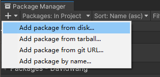 以下に示すように、ウィンドウの左上隅にある[Add package from disk…]を選択します。
