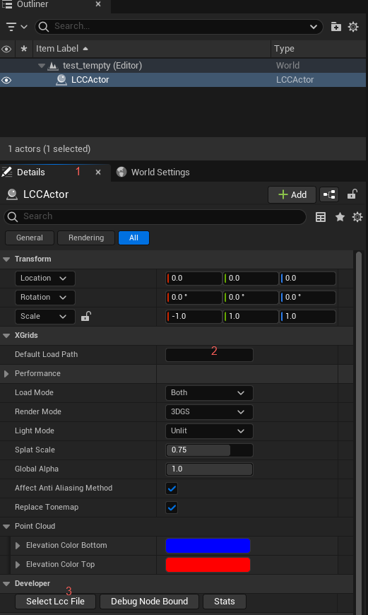 LCC Unreal SDKは、Xgridsが提供する公式開発キットです。指定されたディレクトリからLCC形式のファイルを読み込み、UE5でレンダリングするために設計されています。現在、エディタ内での移動、回転、スケーリングといった基本的な編集操作をサポートしており、デプロイされたアプリケーションでレンダリングするためのプラグインをパッケージ化することも可能です。