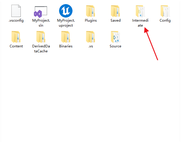 3)プロジェクトディレクトリ内の「Intermediate」フォルダを削除します。