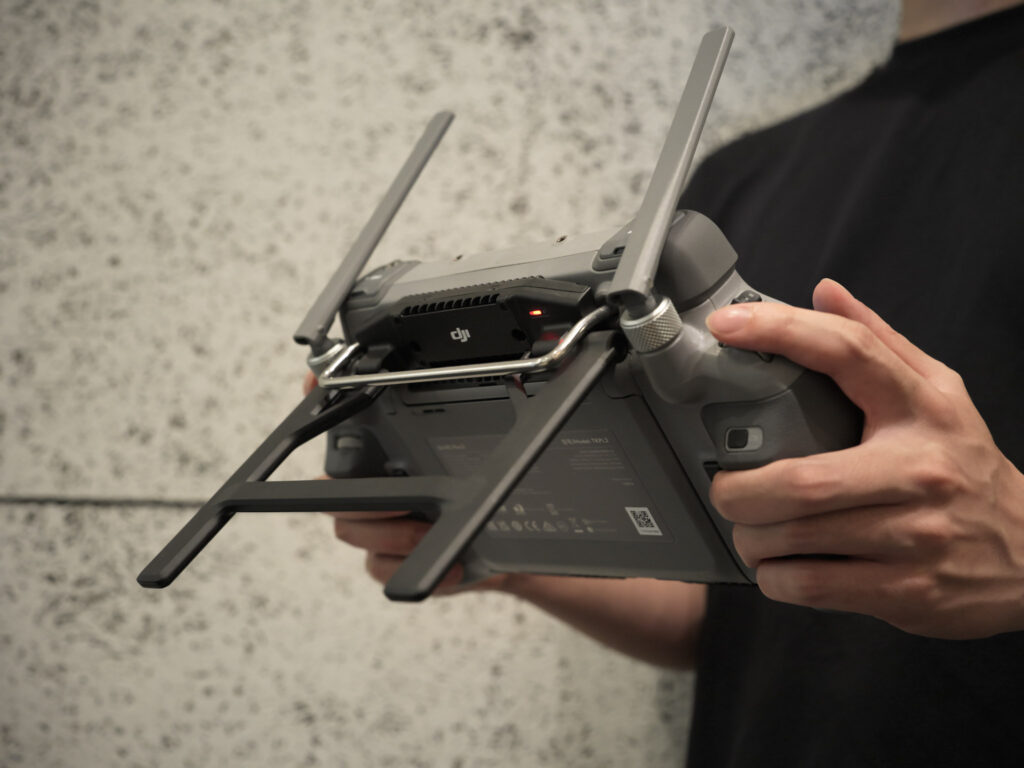 今回の機体ではMatrice 4シリーズと同様にDJI RC Plus 2 Enterpriseを採用。Enhanced(強化された)という名前がついている通り、後ろには伝送強化用のsub2G増強アンテナが追加されており、伝送距離が12kmから20kmへと拡張されています。(日本仕様の場合)