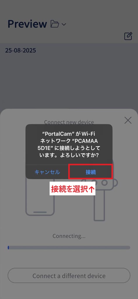 アプリを起動して、下部中央の製品アイコンをタップすると自動で接続されます。