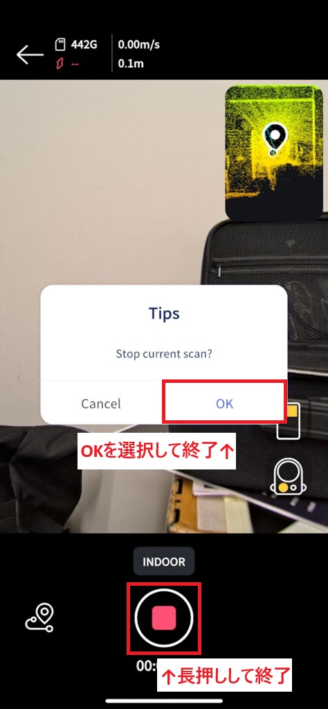 この流れでスキャンを進めることで、全体の広がりと細部の精度を両立した、バランスの良い3Dモデルを生成できます。