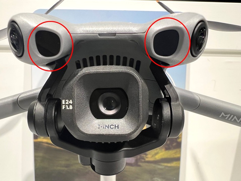 Mini 5 Pro では従来の障害物センサー(ビジョンセンサー)に加えて、Mavic 4 Pro や Air 3S と同様にLiDARセンサーが搭載されました。これにより夜間などの暗い環境でも、周辺の形状を把握して障害物を検知することができます。