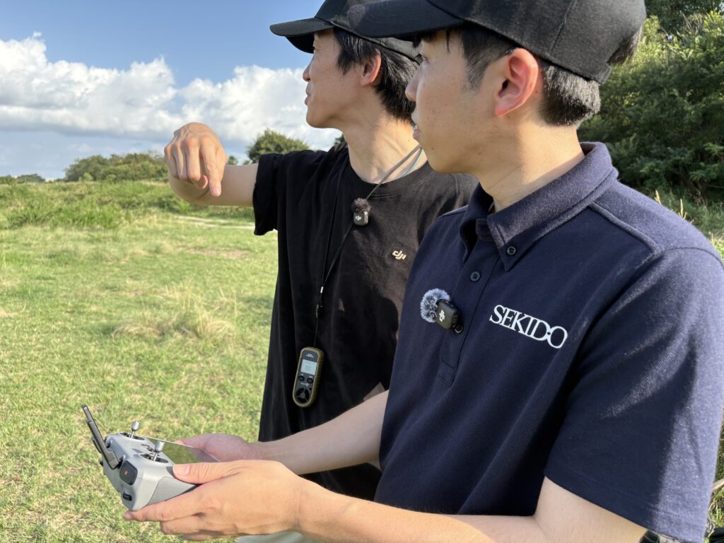 さらに今回の空撮には、DJI JAPAN株式会社の小森さんにも同行いただきました。撮影のアドバイスもいただいたので、初心者の方もぜひ参考にしてください。