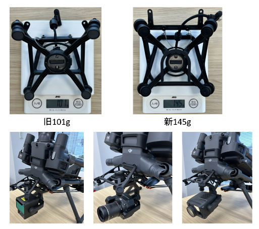 ジンバルダンパーも耐荷重1.6kgに耐えられるよう、新たなマウントになりました。少々前方にカメラが位置する設計となっております。
