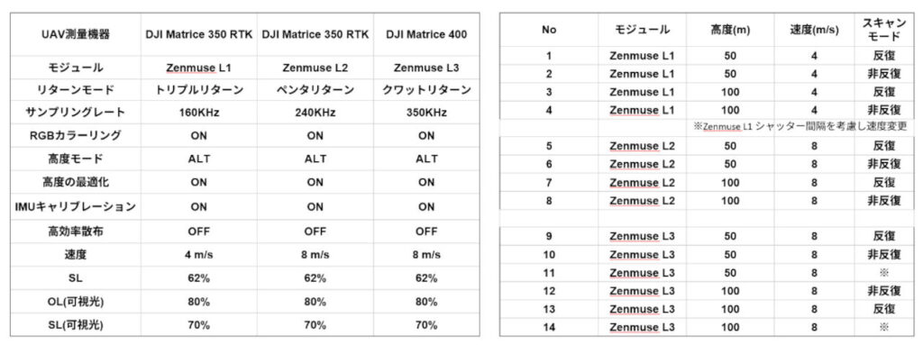 ・DJI Matrice 350 RTK/DJI Matrice 400+Zenmuse L1/Zenmuse L2/Zenmuse L3 を用いて精度と再現性について比較