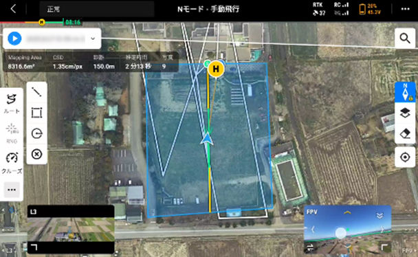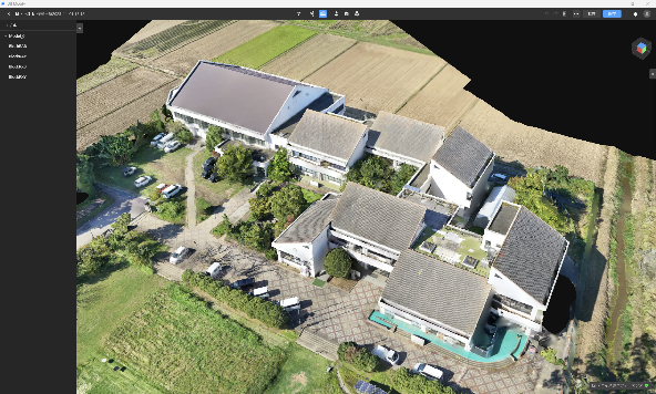 検証で使用した DJI Terra は DJI製マッピングソフトウェアで、ドローンで撮影した写真や映像を分析し、オルソ画像(歪みのない地図)、3Dモデル、3D点群データなどのデジタル資産に変換できます。
