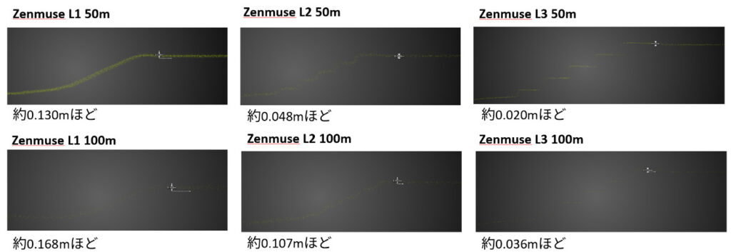 Zenmuse L1/L2/L3 非反復 50mでの比較
