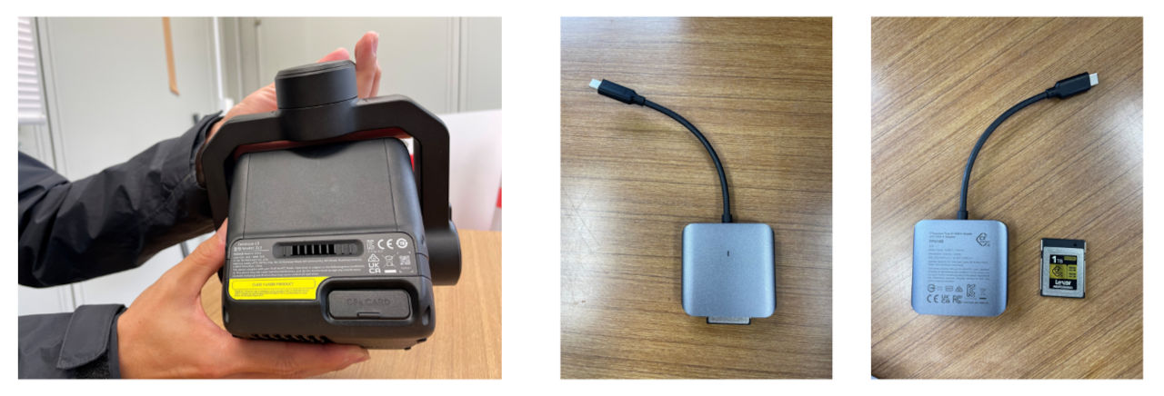 1TBのCFスロット搭載し、CFカード2枚とカードリーダーも付属します。弊社のPCで検証した結果、microSDに比べてデータ転送速度は約10倍以上速い数値となっております。
