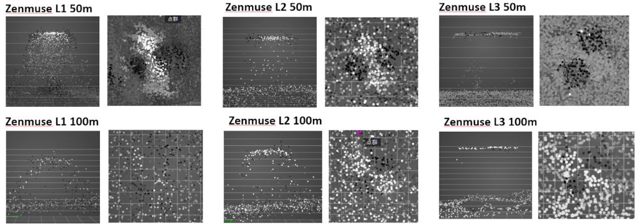 Zenmuse L1/L2/L3 非反復 50m比較