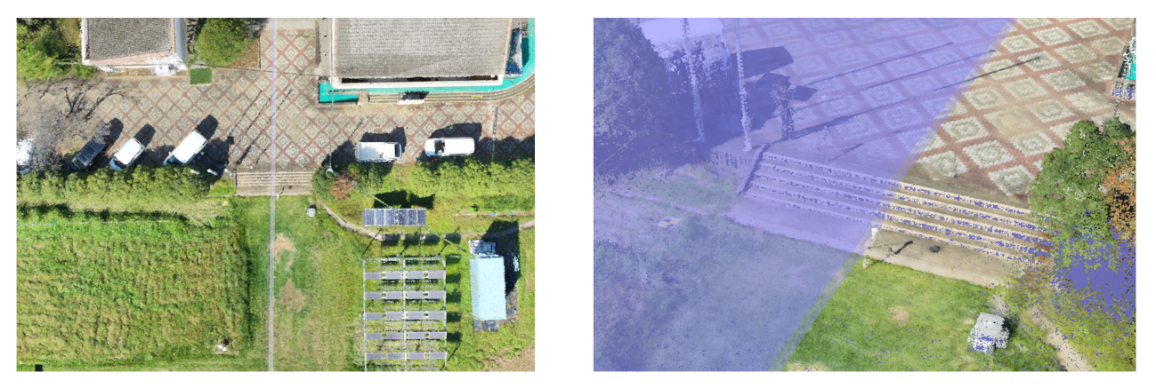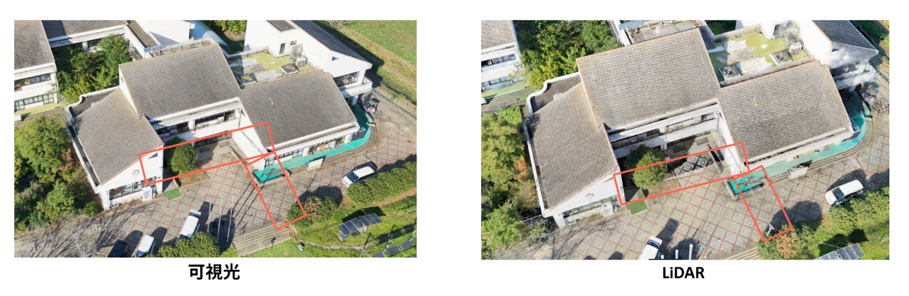 オブリーク飛行を用いて、可視光のみとLiDARを用いた構築で比較