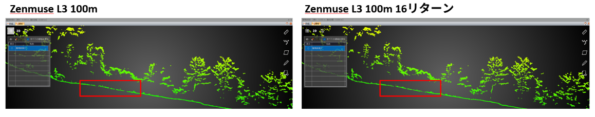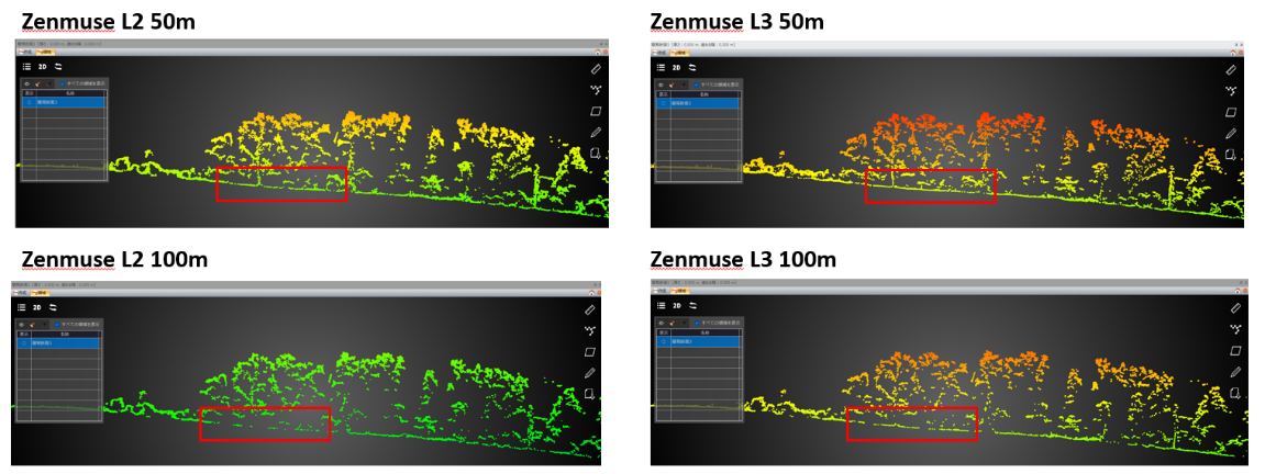 Zenmuse L2/L3 非反復 50m/100mでの比較