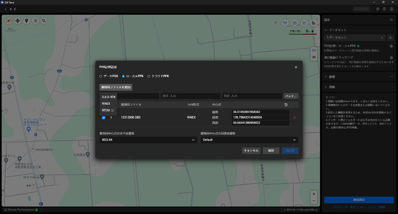 DJI Terra 構築時設定