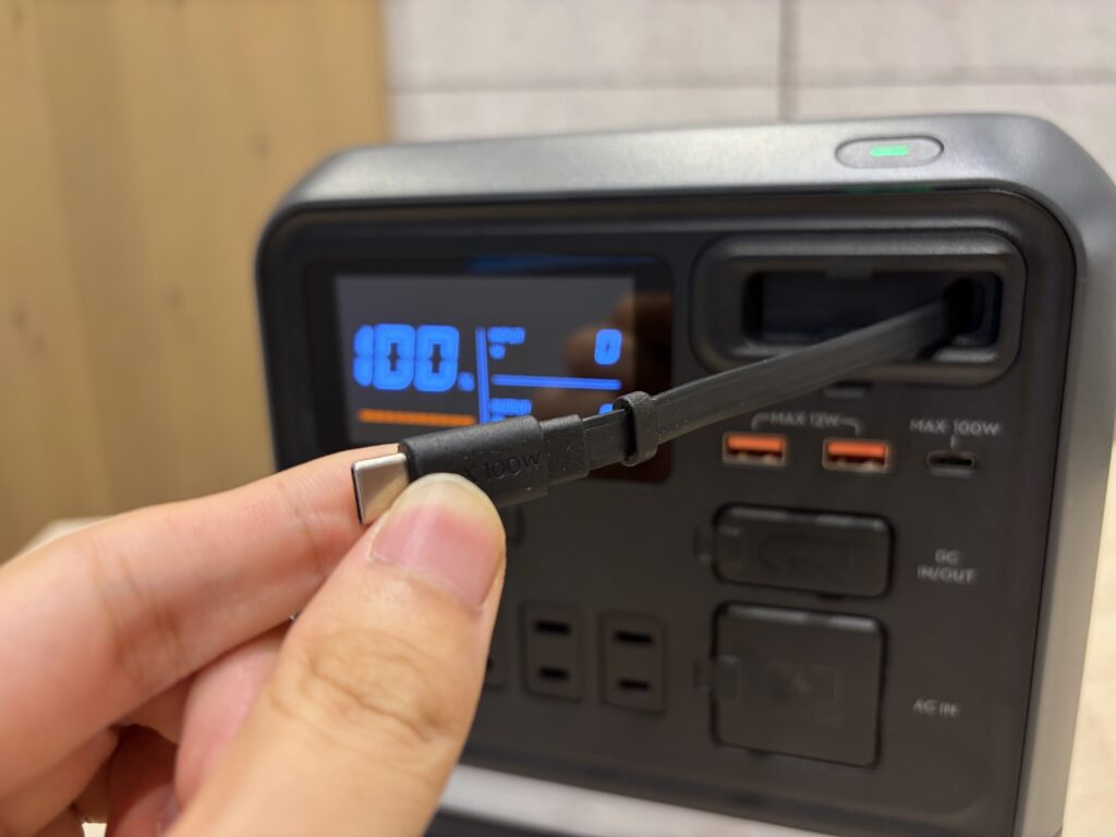 巻き取り式のType-Cケーブルが搭載されているので、万が一ケーブルを忘れてしまっても、すぐに充電できます。私はよくケーブルを忘れてしまうので、これは嬉しい機能です。同じタイプの方には特におすすめです(笑)。